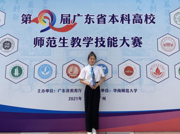 “身在井隅,心向星光。眼里有诗,自在远方。” 作为一名师范生,黄海婷也在不断的提升教学技能。在2020年教育实习期间,担任生物老师兼班主任以及七年级的备课组组长、实习队长。一学期实习工作成果显著,她将七年级的生物成绩提到所有学科的第一名,并获得了优秀实习生的称号。同时,她也非常注重自己的专业能力,参加了广东省教师技能大赛并获得优秀奖。