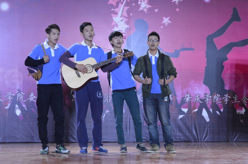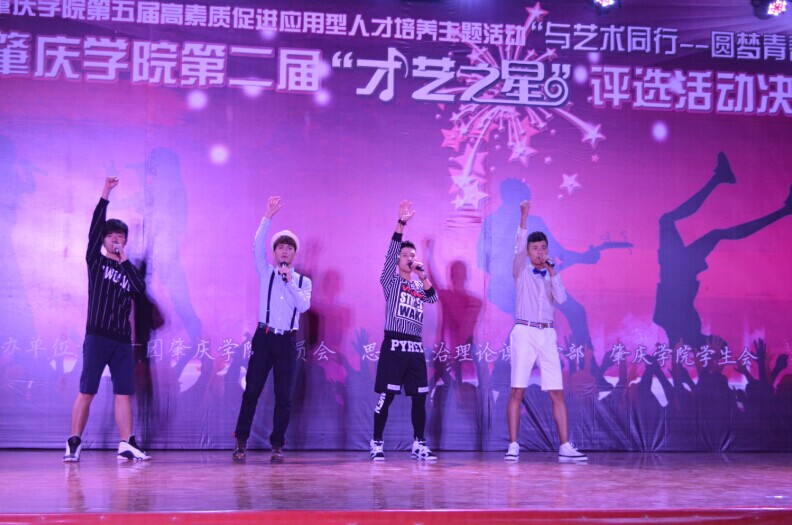 比赛在场下观众激情四射的呼喊声中点燃。场上15组选手同台献艺,各显神通,不仅有劲歌热舞,乐器演奏,更有幽默诙谐的话剧表演,为观众带来一场视听盛宴。其中,12号选手二人组合带来的机械舞——《机器人管家》,凭借其独特的舞风令观众耳目一新。“主人“抱着贴有“京北商城”的“机器人”出场,在节奏分明的B-box伴奏下,“机器人”在“主人”的使唤中作出各种新奇搞怪的动作,只见机器人四肢动作保持固定的速度慢慢将肌肉收缩,身体微微颤抖,放松后将力量释放出来,他甚至模仿迈尔.杰克逊的经典太空舞步,一举一动都惟妙惟肖地展示了机器人的状态。而9号选手四人组合则以一曲《Marry you》引爆全场。“Hey baby,I think I wanna marry you…”他们以淳厚的嗓音,动感的曲调,霸气的台风深深吸引现场观众一齐挥舞手中的荧光棒,他们走到台下与选手激情互动更博得场下阵阵尖叫。