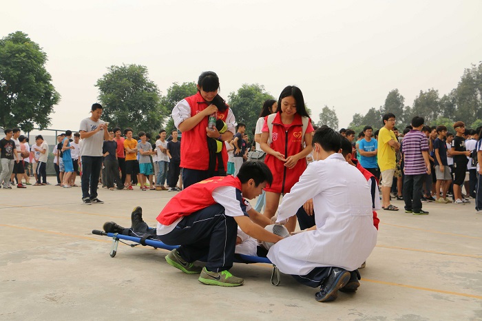 学生进行医务救助演习