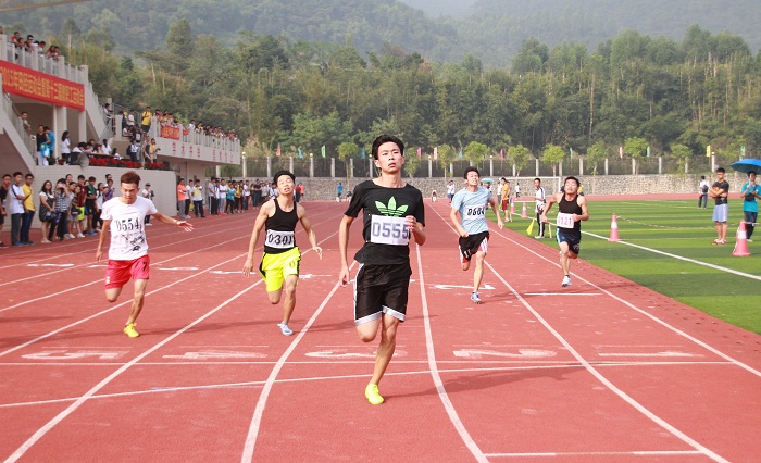 比赛现场烈日当空,观众也热情高涨。拍腿,弹跳,拉筋,八位参赛选手在起跑点做着赛前预热。“各就位,预备!”“砰!”随着一声枪响,各位选手如离弦之箭般蹬离助跑器。在前五十米的角逐中,八位选手势均力敌,不分伯仲。当剩下三分之一左右的赛程时,三号选手陈连有头微后仰,步伐拉大,出现赶超他人的趋势。此时观众席上也沸腾起来,热烈地为选手呐喊助威。陈连有咬紧牙关,急速摆动双臂,作最后的冲刺。距离渐渐被拉大,冲线了!3号陈连有最终以11秒40的成绩夺得本次赛事的冠军。