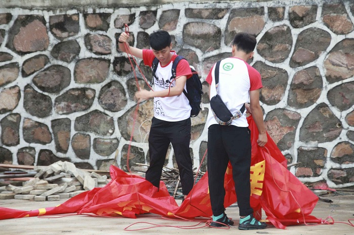 当天空还没褪去“黑衣”时,各二级学院的机构工作人员已经开始工作。搭帐篷、搬桌椅、装饰大本营、准备桶装水以及医护用品。当运动员赛跑冲线时,他们立即围上去搀扶;当运动员在赛场上受伤,他们总是在第一时间送上应急处理药品;当运动员检录时,他们总会陪着运动员奔东跑西。大到安排运动员比赛,小到搬运物资,事情虽小,但却给人以大大的温暖。“我们做的虽然是后勤工作,但为了让运动员们没有后顾之忧,我们愿意做。”文学院学生会苏同学表示:“我们代表的是整个学院,我们觉得挺光荣的。”