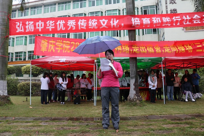 开幕式上,校团委副书记马舒洁致辞:“大学生要拒绝做‘低头族’,积极参与志愿服务活动,践行社会主义核心价值观,弘扬校园志愿文化,为建设有爱砚园、幸福社会献力量。”