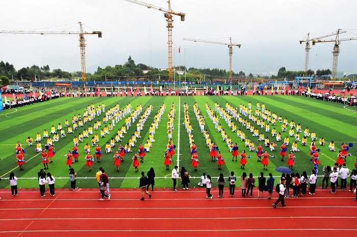 此外,今年新增的师生广场舞表演吸引大量观众的眼球。两百多名表演人员,在冷风细雨中坚持表演,动作有力到位,展现出蓬勃向上的时代风采。