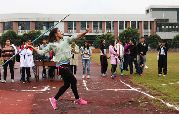 本网讯 (记者 吴运铖 温焓芳 摄影/张璇杰 黄安琦 吴伊琳 )11月11日上午,女子乙组标枪决赛在第一田径场开赛,最后,来自14体教1班姚结连以24.90m成绩摘得桂冠,16体教2班马正娟、14体教1班梨小花分别获得亚军和季军。