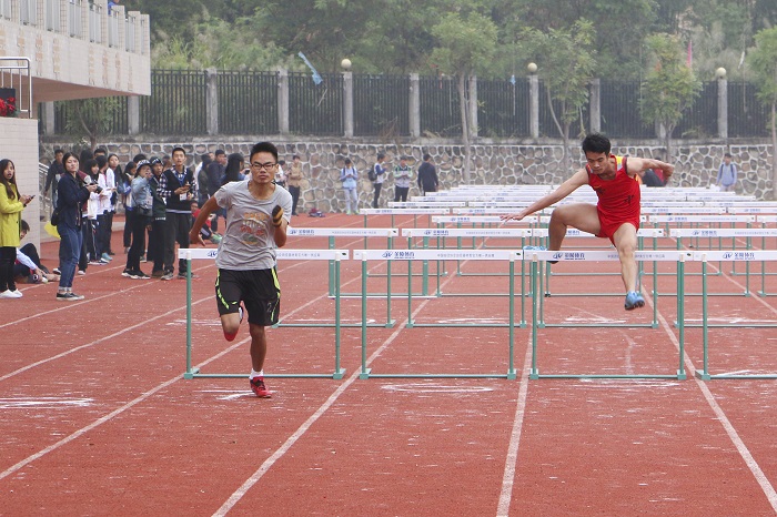 本网讯(记者 李美良 杨竣 摄影/谢斯阳 吴伊琳 黄安琦)11月12日上午,男子乙组110米跨栏决赛在第二田径场展开激烈的角逐。来自体育与健康学院15体育教育3班的赖隆威以17秒26的成绩斩获冠军。