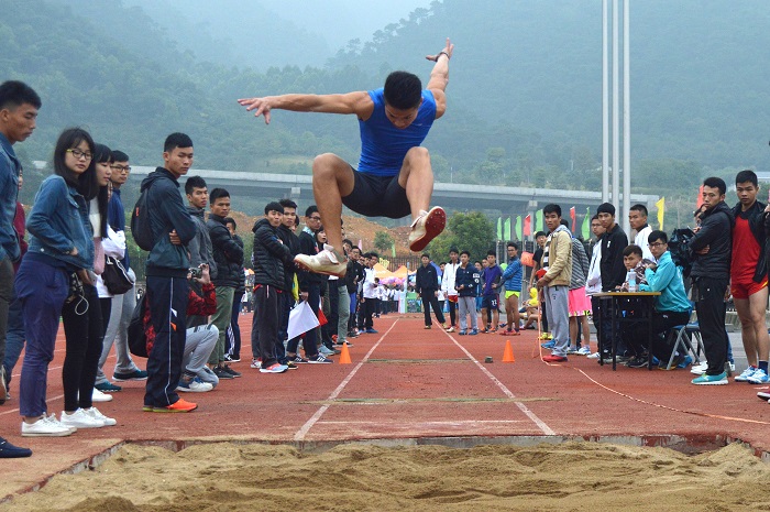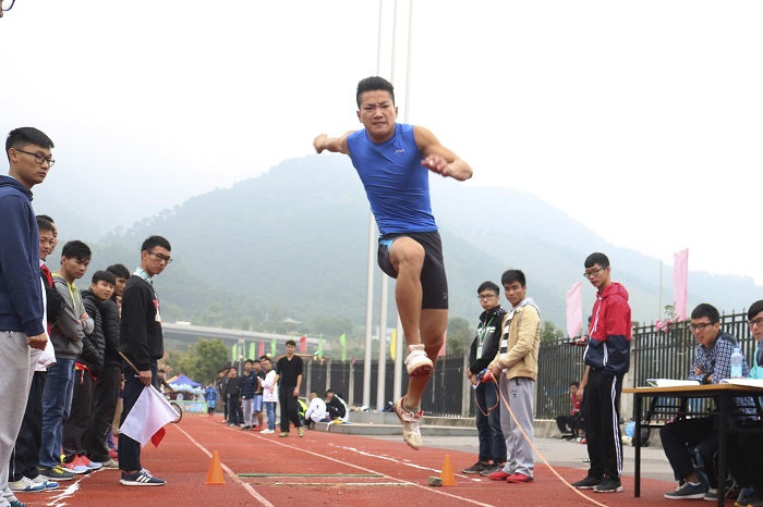 比赛分为试跳,初赛和决赛三个部分。随着指挥员的一声令下,运动健儿们朝着起跳板奋力冲刺,一跳单脚跳,二跳跨步跳,三跳跳跃落地,一连串连贯的动作和完美的落地赢得了在场观众的掌声。轮到高岭上场了,高岭身着蓝色运动背心和运动裤。收到指挥员的起跳指示后,高岭快速地向前冲去,脚踩起跳板,膝盖弯曲蓄力,借助惯性向前一跃,完成完美的第一跳,紧接着第二跳,第三跳,高岭用自己出色的表现赢得了比赛的胜利。而来自体育学院的孙华平仅以0.09米之差获得第二名,比赛现场竞争激烈,进入白热化,现场观众欢呼声、掌声不断,气氛热烈。
