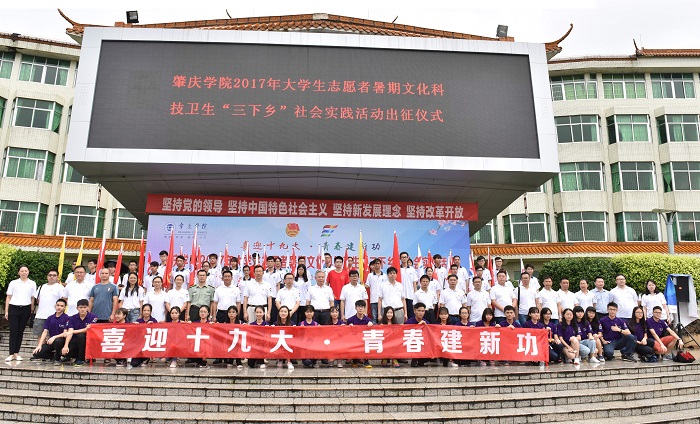 我校大学生志愿者暑期“三下乡”社会实践活动已成为应用型人才培养的一个重要抓手,实践育人效果明显,先后十五次获评“全国大中专学生志愿者暑期‘三下乡’社会实践活动优秀组织单位”。今年,我校根据“按需设项、据项组团、双向受益”的原则,以围绕中心、服务大局、积极投身全面依法治国、全面建成小康社会为重点,有针对性地组建了61支重点服务团队1500余名志愿者,以服务地方经济社会发展和服务青年学生成长成才为主线开展活动。以学习宣传习近平总书记系列讲话精神、喜迎十九大、中国人民解放军建军90周年、中国人民全面抗战80周年、香港回归20周年和肇庆市创文攻坚等重要节点为契机,特别组建了10余支重点社会实践队伍,分别开展寻找红色足迹、“情义两地行”粤港大学生志愿服务合作营、井冈山大学生暑期理想信念教育、新疆籍学生回乡发声亮剑宣讲、我为美丽乡村绘蓝图——广东大学生南粤美丽乡村环境整治规划公益志愿行动等多种形式的三下乡社会实践项目。