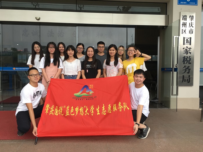 本网讯(团委 通讯)今年暑假期间,我校派遣了经济与管理学院、数学与统计学院等学院的29名同学组成“蓝色梦想”大学生志愿服务队,作为我校“三下乡”社会实践队伍之一,前往端州、四会、广宁等地的国税局进行志愿服务。