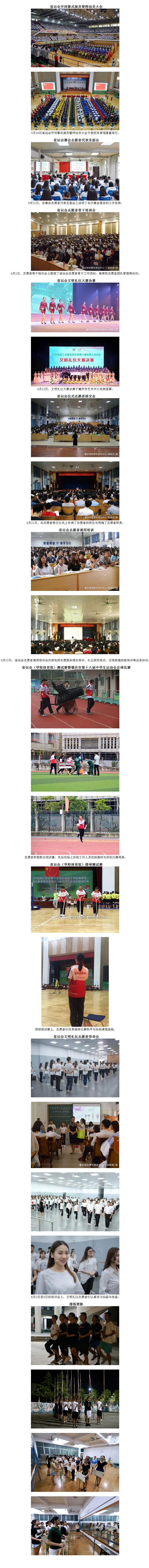 为全力配合省运会的成功举办,为赛会提供全方位、多层次、高质量的志愿服务,展现我校志愿者的良好风貌,我校积极配合省运会筹委会工作,开展了一系列志愿者培训工作以及举办相关活动为省运会“呐喊助威”。我校各类志愿者为省运会做好了充分的准备,将以饱满的精神迎接这场体育盛会的到来,下面让我们一起看看我校志愿者的风采吧!