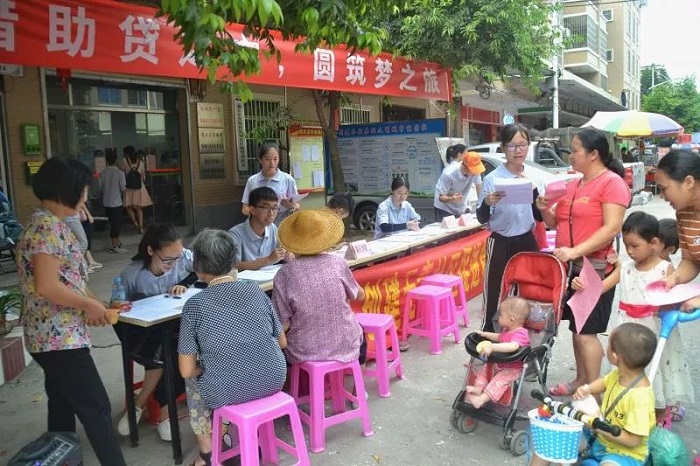 以“借助贷之力,圆筑梦之旅”为主题的宣传工作亦陆续开展。宣传内容包括讲解“高校助学贷款”政策与发放相关调查问卷,掌握居民对“高校助学贷款”政策的了解程度。