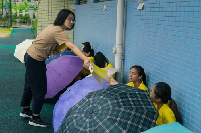 第二,由于前期对接工作的不严谨和不细致,我在那段时间里每天都有突发情况要处理,如车次安排出错,凌晨收到紧急通知等状况。我是标兵联系人,不可以喊苦喊累,只能在淋过大雨之后,到群里发布公告,提醒同学们喝热水、洗热水澡,暖暖大伙儿的心,然后才拖着疲惫的身躯处理我自己的事情。