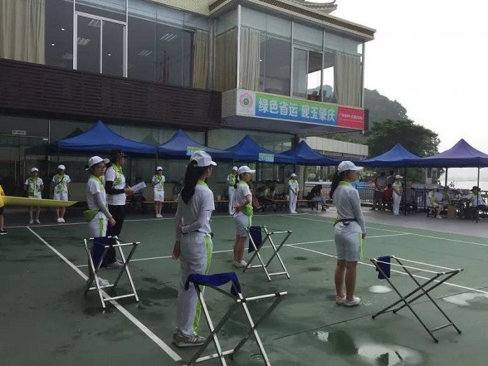A: 每天我基本上是5点起床,和“小七星们”集中出发前往肇庆市国家水上运动中心。我们医疗点的志愿者还要自行前往出头村村委会前的码头,在医生到来之前在医疗点搭好帐篷,并在比赛结束后回收。