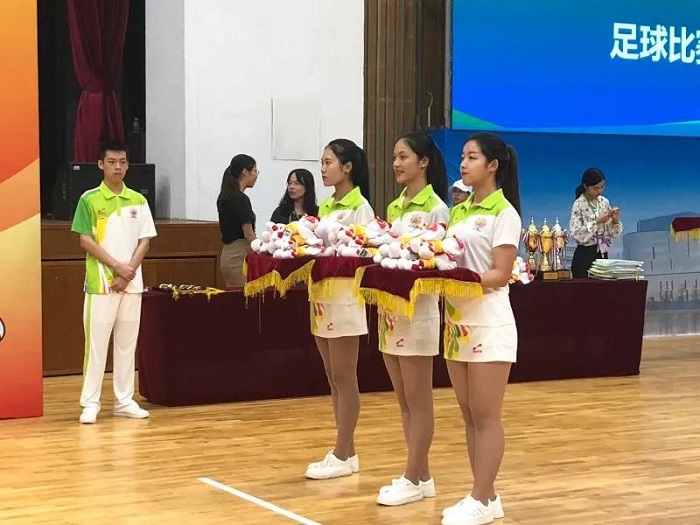 最后,文明礼仪志愿者们协助本次足球(学校男子组)比赛颁奖,以礼仪的姿态展现志愿的风采。