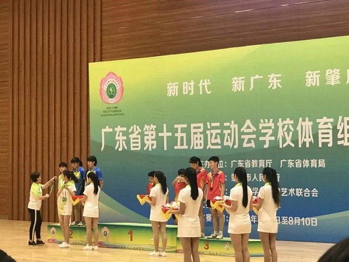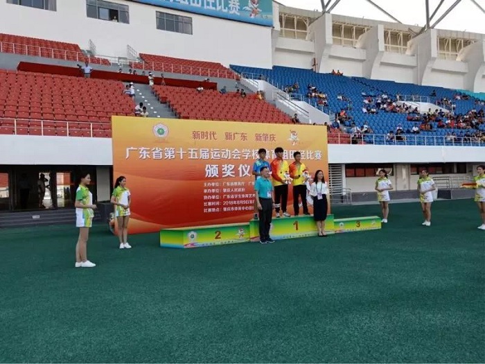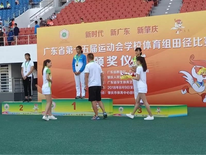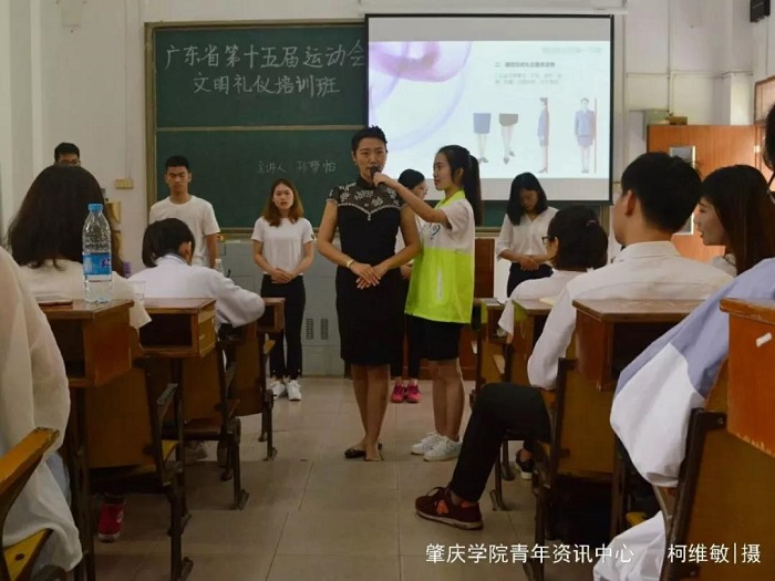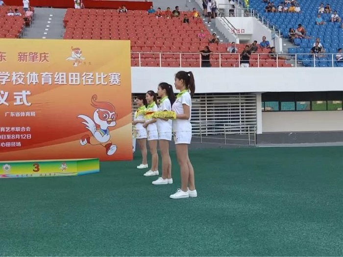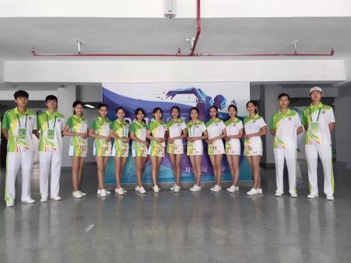 在肇庆市广东工商职业学院举行的省运会竞技体育组游泳比赛颁奖仪式中,我校文明礼仪志愿者参与其中。