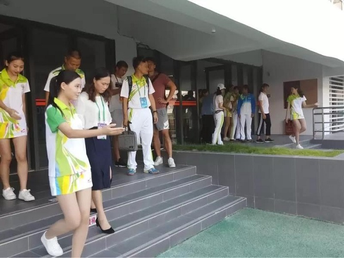 即使比赛结束了也要献上一张美美的工作照呢!绿色省运,砚玉肇庆,小七星们都以饱满的精神服务省运会,为运动健儿们提供最好的志愿服务,为他们喝彩。