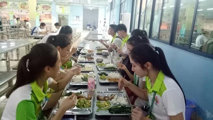 每次志愿服务后,他们便会拼桌吃饭。吃饭便是他们闲暇放松的时间,围成一桌吃吃饭聊聊天,一天的志愿服务就在这样的辛苦和快乐中度过了。