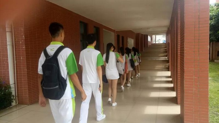文明礼仪志愿者引领运动员进场。