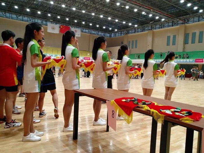 乒乓球比赛结果出来后,她们在准备奖牌,等待运动健儿颁奖时刻的到来。