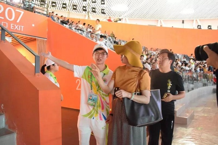 自今年七月以来,文明礼仪志愿者虽在各个比赛项目的颁奖台身经百战,早早练就从容大方的礼仪姿态,但她们的每一次志愿服务就像是第一次似的,认真细致,毫无半分懈怠。
