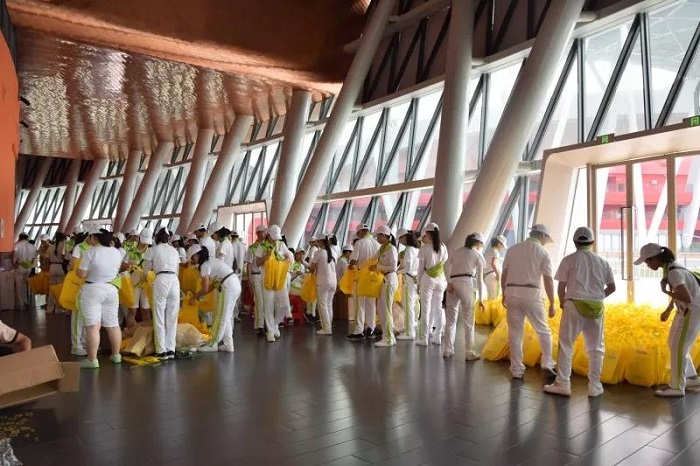 随后,小七星们便将一袋袋包装好的礼品拿进内场,依次摆放到各个观众的座位上。立刻,观众座位席上便成了一片金色的海洋!那礼品闪烁着灿烂洋溢的色彩,是每一个小七星的辛劳和汗水!