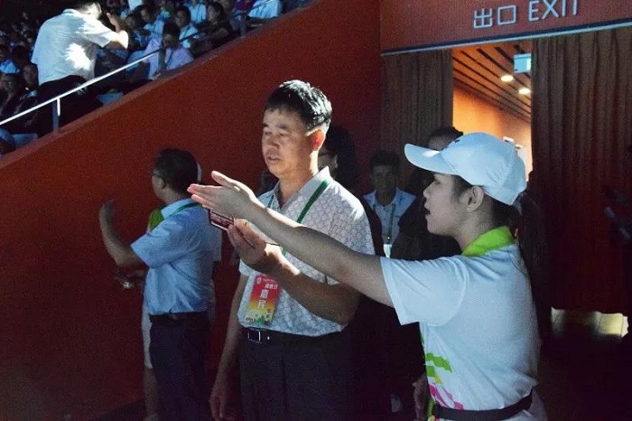 看,他们要牢牢记住场馆所有的出入口、通道的位置和方向,以便在省运会闭幕式开始前指引观众入场,耐心解答观众的疑问。同时,在演出期间,志愿者们要维持内场的秩序,做好随时应付各种突发情况的准备。演出结束后他们便引导观众退场,直到确认场内卫生间无观众滞留才结束志愿服务工作。