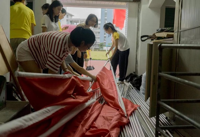 张展豪笑称,代用旗手属于“多功能”旗手。而多功能之处就在于,平时他们都会帮其他仪式组女生搬运矿泉水,盒饭和道具。这真是十分有爱。
