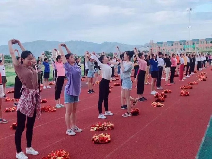 训练内容主要是对各个引导员的站姿、行姿等体态姿势进行反复训练,要求引导员站如松,行如风,向各地市代表团及观众等展现青年志愿者的良好精神风貌。其次,便是严格训练各个引导员的笑容,要求笑容得体,展现其亲和力与青春活力。在训练时,引导员们需穿着高跟鞋进行训练,并每个动作姿势都需保持十分钟到半小时。这严格训练对于她们而言,着实是一个挑战。而她们却从不抱怨从不偷懒,只为在开闭幕式上,以更加标准、整齐划一的步伐引导各地市代表队团运动员们,服务绿色省运。