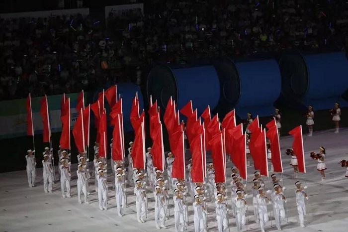 陈业国对我们说:“旗队一共有64人,虽然参加开幕式演出只有60人,但大家都用尽全力,发挥出最大的力量。在训练过程中,遇到最大的困难可能是个人的身体条件了。有位旗队志愿者因腿部抽筋,在训练的时候突然倒下。但经过休养后,他依旧坚持训练,直到参加开幕式工作。而从那一次以后,我都会一直密切留意旗队队员的身体情况。”
