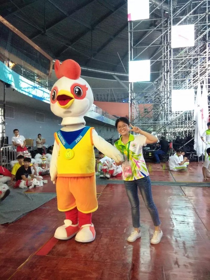 当提及到工作中遇到的情况,朱同学对我们说:“开幕式当天,由于场外运动代表队人数多,排队时有点困难,所以用时长了些。而预演当天,有一位表演方阵的负责人由于忘带工作证,被保安拦至场外。因为在仪式组排练时见过那位负责人,所以我上前去跟保安说明情况。于是保安及时放行,同时,我也收到了那位负责人的感谢。”