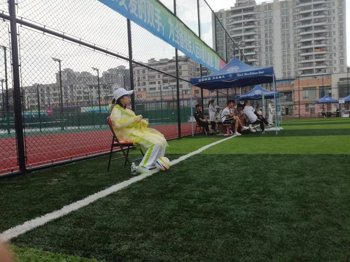 即使比赛过程中下起了雨,他们也依然坚守岗位,没有一句抱怨。