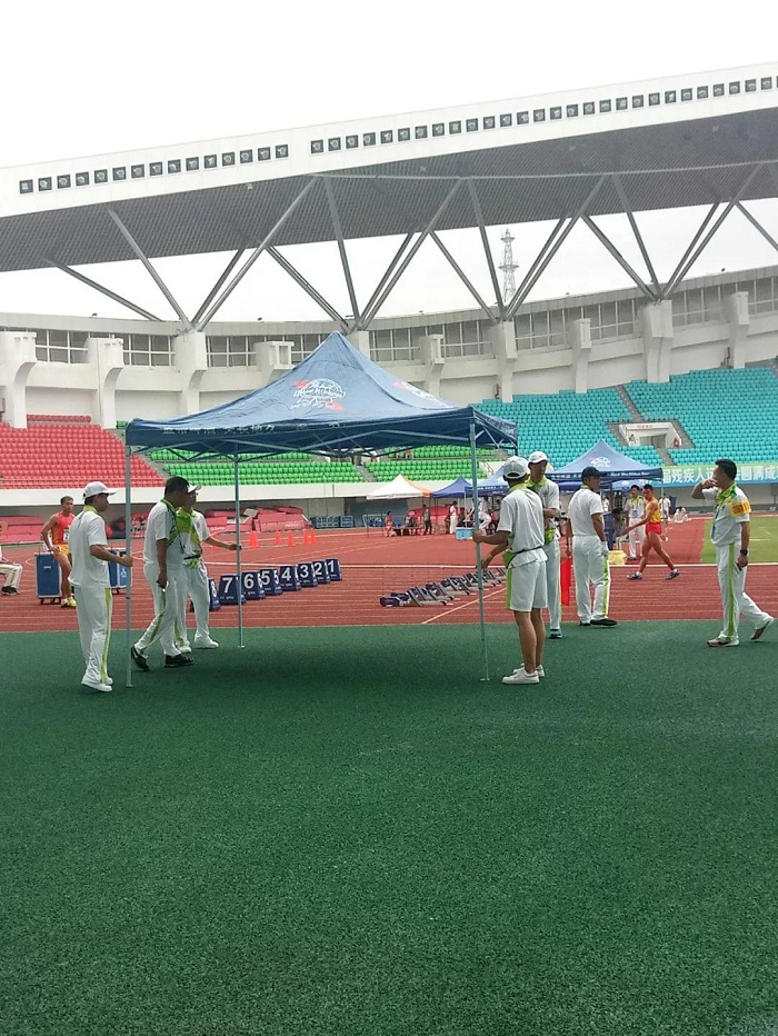 天空下起淅淅沥沥的小雨,志愿者们搭起帐篷,让运动会得以更顺利地进行。