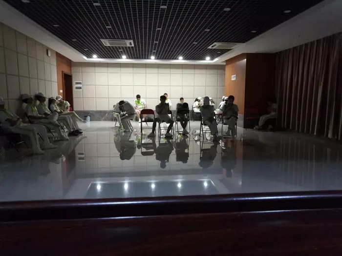 与此同时,赛后组的志愿者们也赶往了服务场地进行培训。他们的工作职责是帮忙收拾并保管好运动员的个人物品。