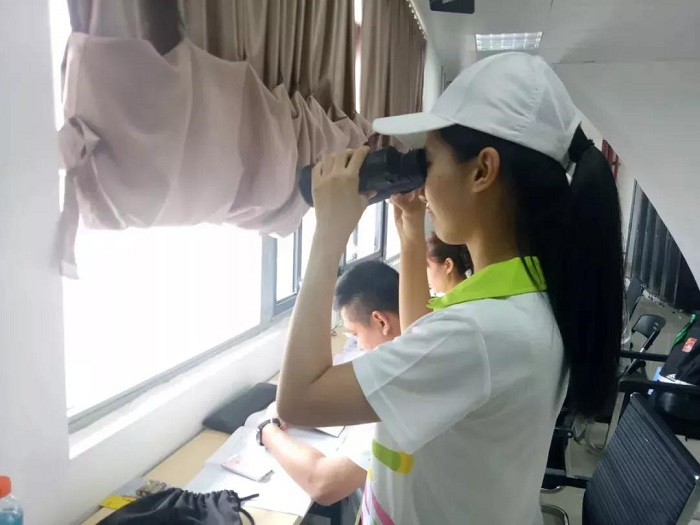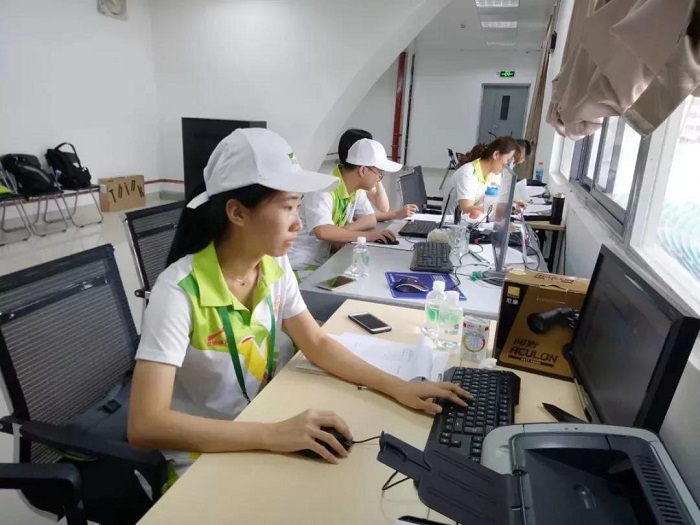 志愿者们本着公平的原则,集中精神,关注赛程动向,严守每一项赛事,确保运动员成绩精准无误地上报。