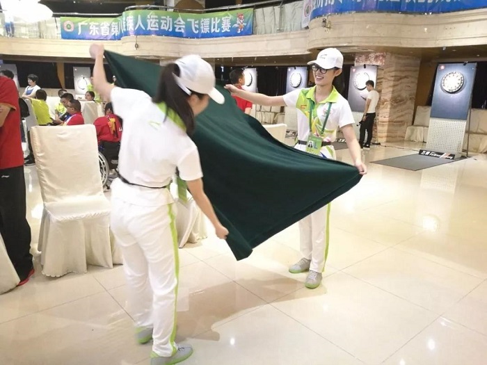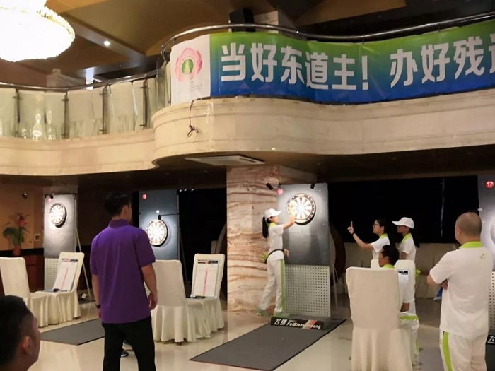 8月30日,为期三天的省残运会飞镖比赛在肇庆市金鹏巴顿酒店会议室顺利结束。在正式比赛开赛前,运动员进行为期两天的练习。砚园“小七星”时刻在线服务,连续五天提供志愿服务,助力飞镖比赛顺利进行。