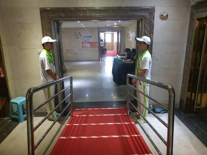 比赛结束后,“小七星”们还需整理现场。他们相互合作,收拾现场垃圾、叠好桌布,将桌子和椅子物归原位。