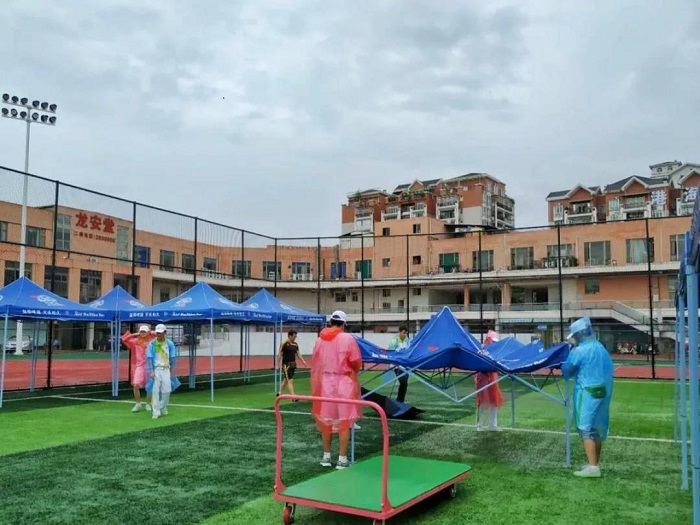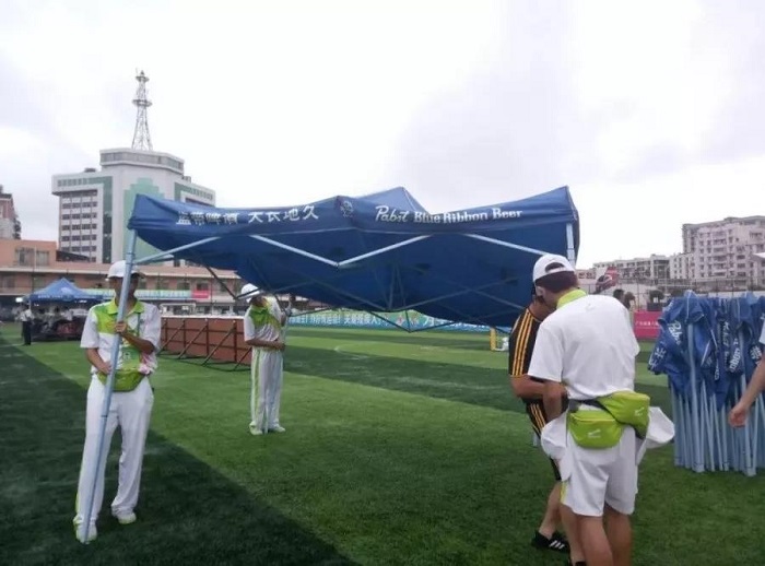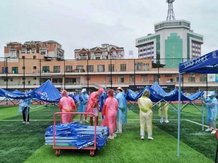 志愿者正在撤帐篷