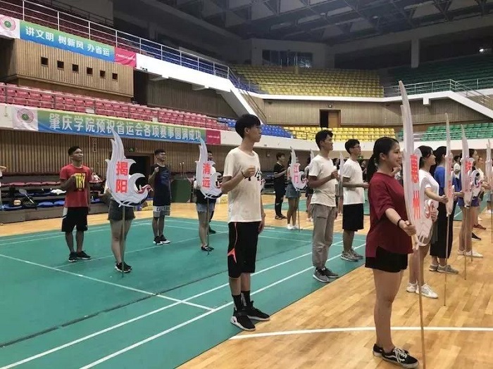 引导员的主要志愿服务工作是在闭幕式中将各代表队人员引领进场。这看似简单的事情,却需要他们在闭幕式正式演出前的每天晚上,在学校体育馆内进行站姿、走姿、举牌、放牌等培训。