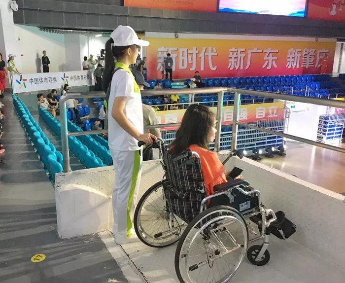 在服务过程中,我看到有位残疾人行动不便,于是上前询问他是否需要帮助。但他却对我说,“不用,我自己可以的”。我很相信他的那句“我自己可以的”,相信他全身的力量。但出于对安全的考虑,我还是紧跟在他身旁,直到他安全地坐到座位上。