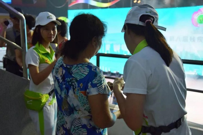 引导来宾、指示方向,文明礼仪志愿者在这场视听盛宴中扮演着重要角色。她们的嘴角微微扬起,向观众们展示着热情、真诚、友好。