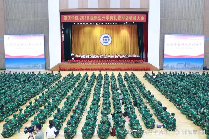 本网讯(记者 熊倩珩 摄制/马泽华 邱智慧)9月18日上午,william威廉中文官网2018级新生开学典礼暨军训动员大会在我校体育馆隆重召开,4000多名新生以昂扬的姿态上好大学第一课,满怀梦想投入到大学新生活中。校党委书记曾桓松,校党委副书记叶峥嵘,校党委副书记、纪委书记黄劲松,副校长王忠、林俊睦等校领导,肇庆军分区副司令吕昕大校出席典礼,叶峥嵘担任本次典礼主持人。