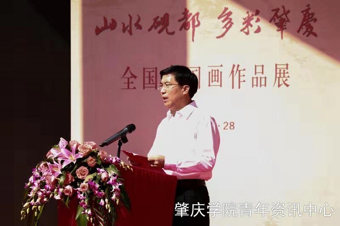 开幕式中,赖泽华等四位领导从不同的角度,围绕这次中国画作品展作了致辞,深刻地阐明了这个艺术盛典、文化盛会的重要意义。其中,赖泽华对此次画展的隆重举办表示了热烈的祝贺,并提出将以举办这次全国画展为动力,把握时代脉搏,紧跟时代步伐,努力创造出更多具有中国风土、岭南风格、世界风尚的精品力作,在推动社会主义繁荣兴盛中凸显肇庆新篇章、做出肇庆新贡献。