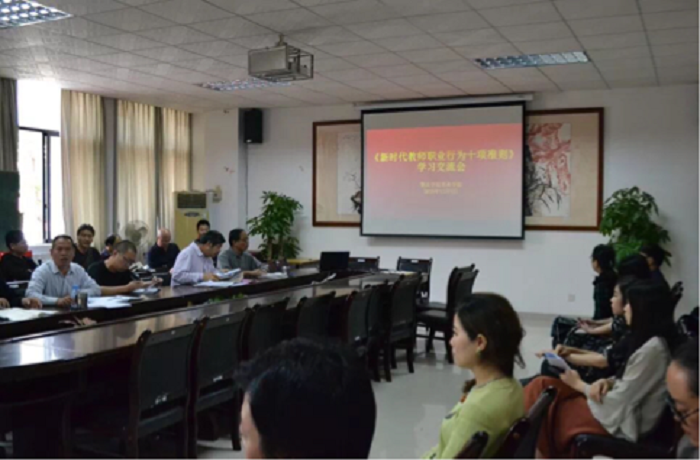 本网讯(通讯员 梁镓泳)为深入贯彻习近平新时代中国特色社会主义思想和党的十九大精神,深入贯彻落实全国教育大会精神,进一步加强师德师风建设,教育部印发了《新时代高校教师职业行为十项准则》《新时代中小学教师职业行为十项准则》《新时代幼儿园教师职业行为十项准则》的通知。美术学院党委高度重视,立即行动。分别召开党委中心组学习会和教职工大会开展《新时代高校教师职业行为十项准则》专题学习。