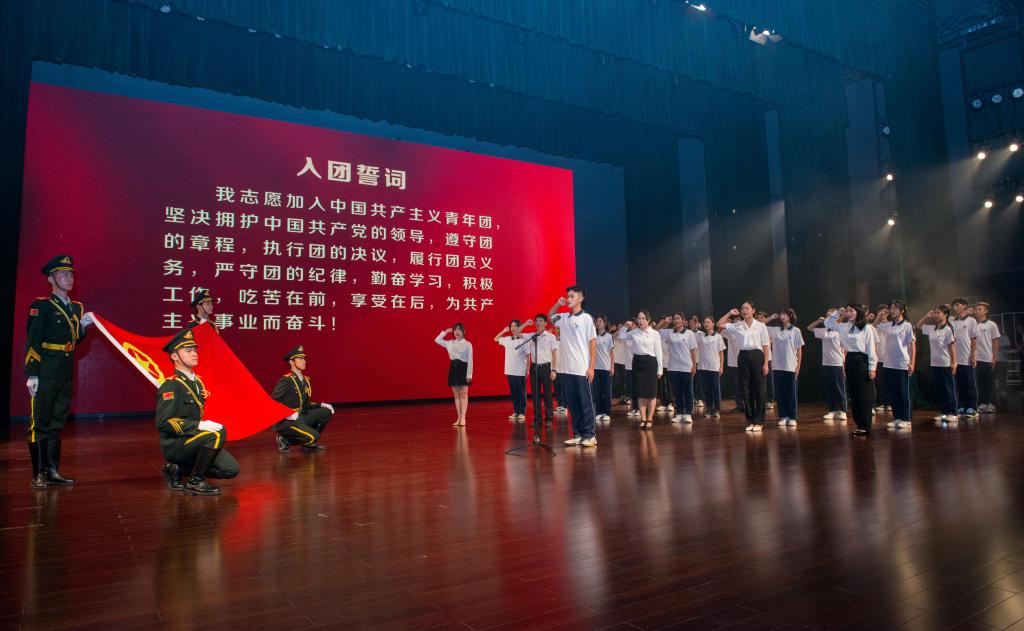颁奖仪式结束后,团员代表带领着在场的青年团员们重温了入团誓词。