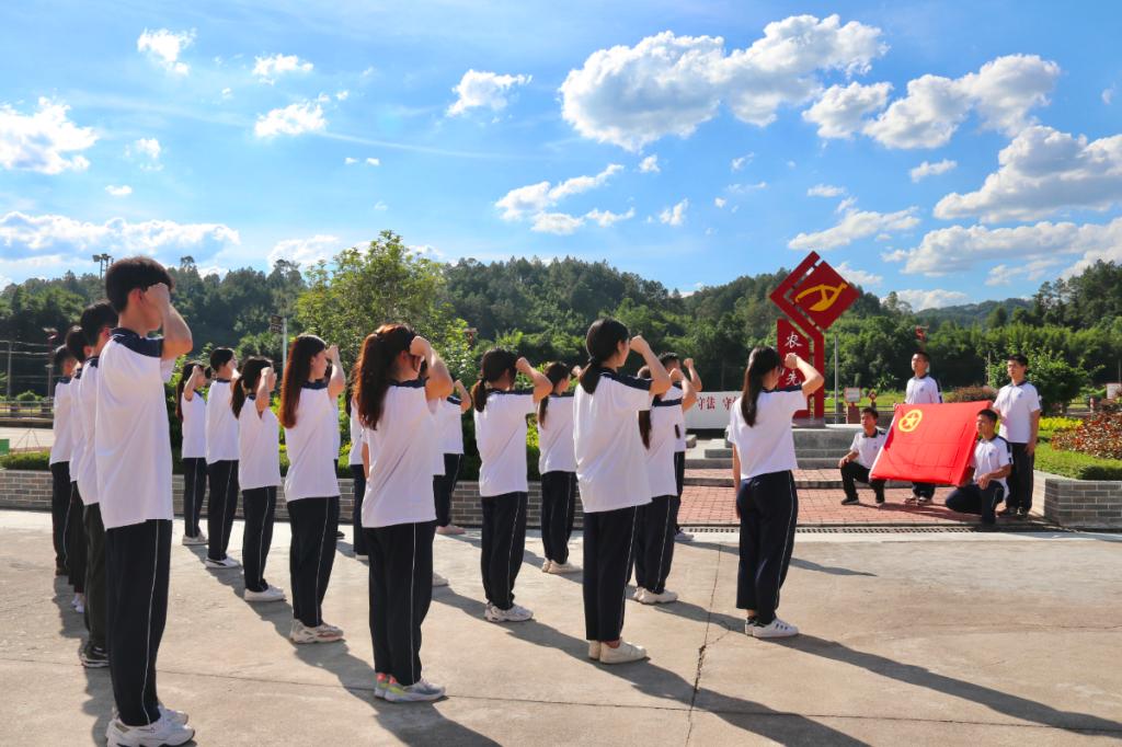 队员们站在红色的土地上,面对团旗,举起右拳,神情庄严地重温入团誓词,以铿锵有力的铮铮誓言,立志传承不怕艰难困苦、坚韧不拔、勇往直前的革命精神、践行“请党放心,强国有我”的庄严承诺。