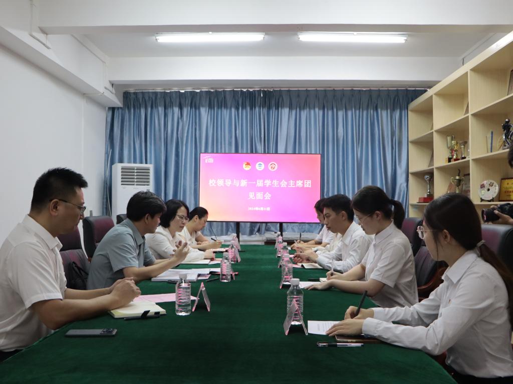 6月11日上午,我校领导与新一届学生会主席团座谈会顺利召开。校党委副书记欧洪湛、团委领导班子及william威廉中文官网第十一届学生会主席团成员参加座谈会。会议由团委书记马舒洁主持。