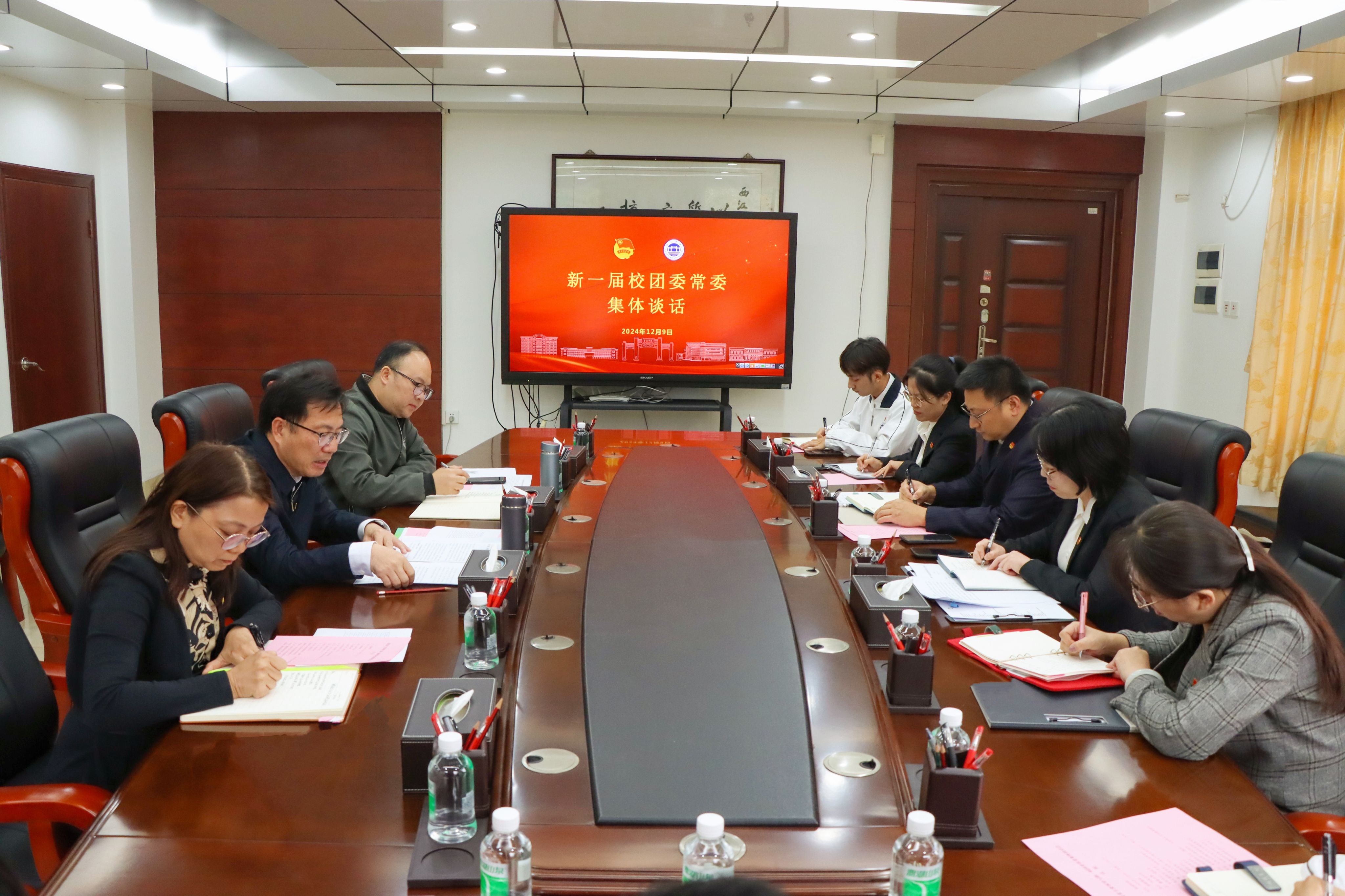 12月9日,学校党委书记谢冠华同新一届校团委常委集体谈话。宣传部、学工部等部门主要负责人以及校团委新一届常委参加会议。