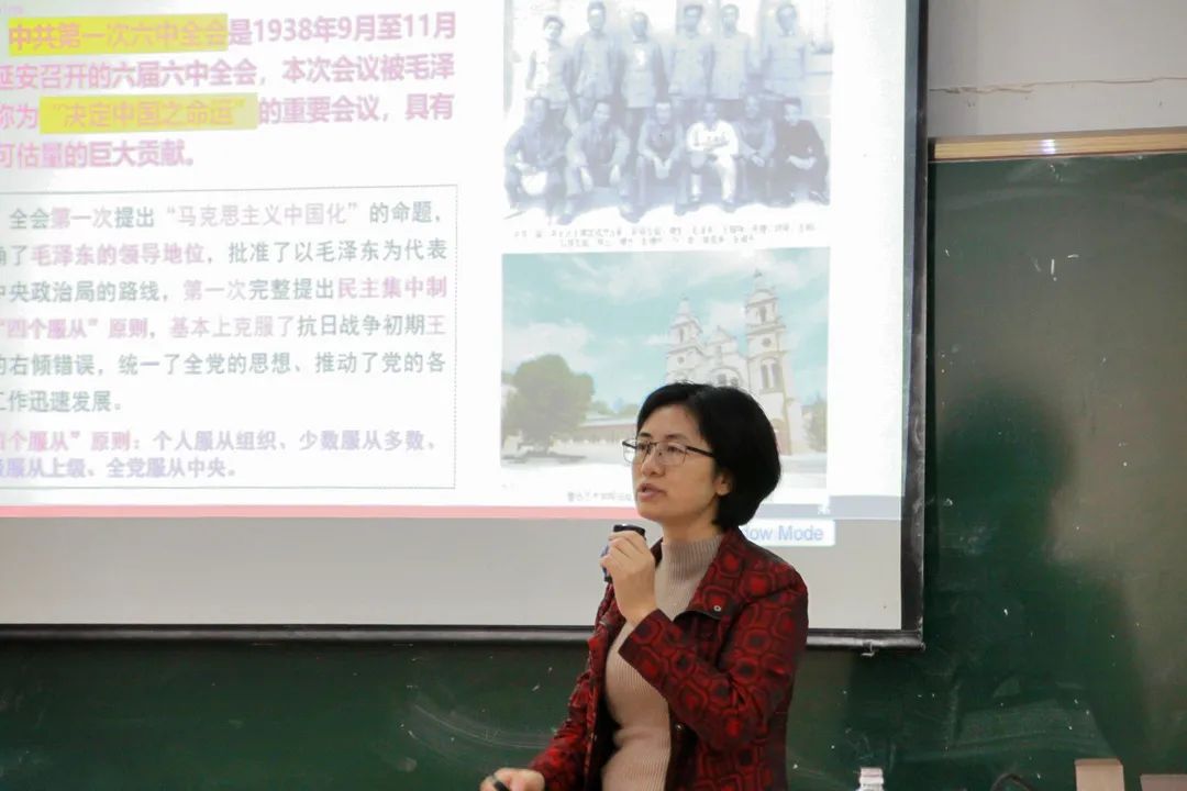 首先,邵院长带同学们回顾中国共产党百年历程中的六中全会,接着以党的十九届六中全会作为切入点,带领党员全体同学了解六中全会和重要决议,再通过引用毛泽东接见李宗仁时所说的“我是考总结经验吃饭的”来教诲同学们要善于总结和运用历史经验。