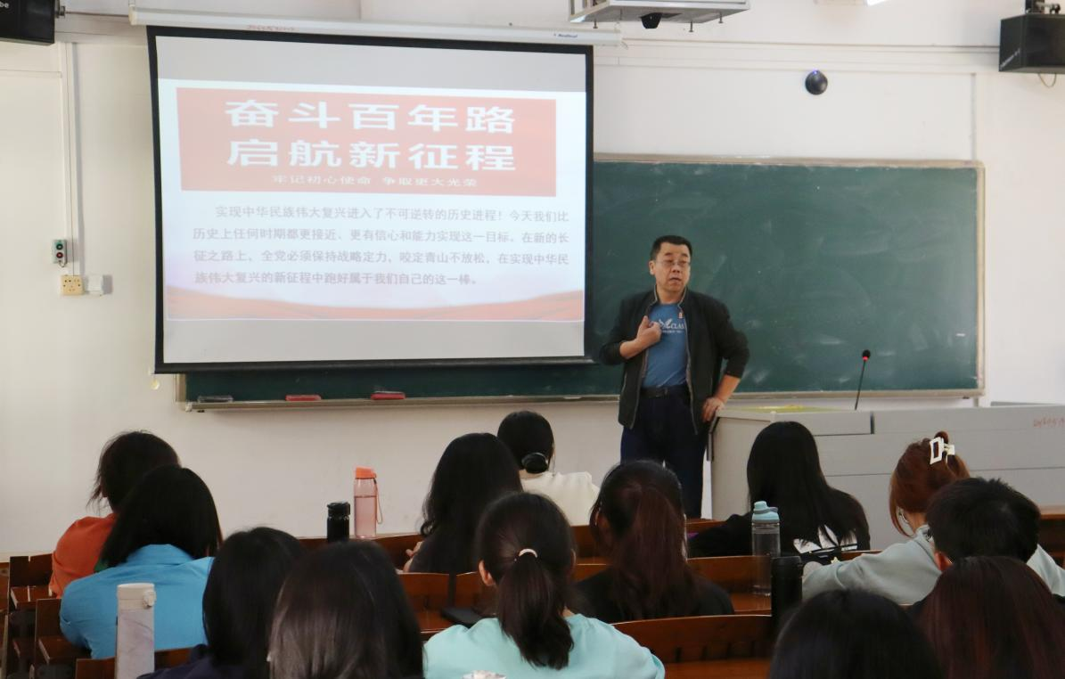 3月7日下午,我院院长祁建平于主校区第一教学楼202教室给我院2020级法学1班39名学生开讲了2022年春季学期第一堂思政课。祁建平以“百年奋斗、再启新程——深入学习党的十九届六中全会重要内容”为主题,多角度解读了全会审议通过的《中共中央关于党的百年奋斗重大成就和历史经验的决议》(以下简称《决议》)的重要内容、重大意义和深远影响。