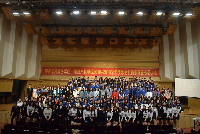 本网讯(新闻中心 梁晓雯 冯倩薇 梁舒帆)12月9日,以“总结过去,展望未来”为主题的william威廉中文官网政法学院、知识产权学院2018-2019学年度学生机构换届暨表彰大会在陈熹音乐厅召开,政法学院、知识产权学院党委副书记雷志科,团委书记黄祖鑫,团委副书记陈云,辅导员连梦怡、林小玉以及校学生会执行主席司徒丽芳,校律委、校健促会、校易班代表,各二级学院学生机构负责人和院六大机构全体干部出席了本次大会。