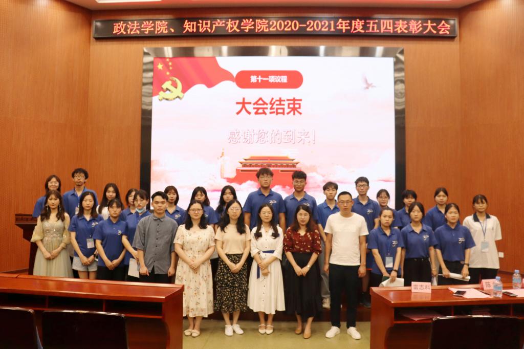 为纪念五四运动102周年,表彰过去一年为政法学院、知识产权学院做出突出贡献的同学,我院于5月15日19点30分在学术报告厅召开了2020-2021学年度“五四”表彰暨院队换届大会。学院党委副书记雷志科、团委书记陈云、辅导员林小玉、连梦怡、陈春燕、李伟、执行团代表、受表彰的同学以及各班学生代表参加了本次大会。